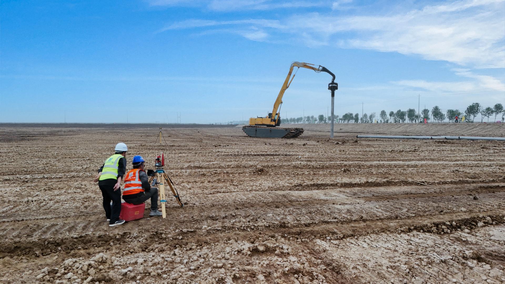一線傳真∣按下“啟動鍵” 向綠注新能!興東120MW漁光互補(bǔ)發(fā)電項目首根樁基成功打入