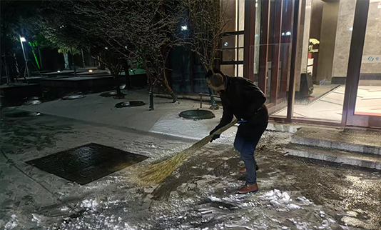 12月18日,新灘鄰里中心迎來2023年的第一場降雪,雪景雖美,但積雪和降溫結冰也帶來了安全隱患。為全力做好雨雪天氣安全防范工作,保障園區(qū)出行安全,悅新物業(yè)立即組織人員對園區(qū)橋2023-12-19 -