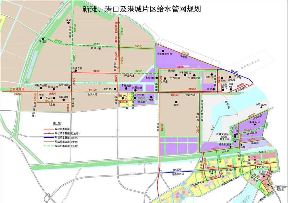 給水管道方面,已建成DN100以上管道100公里;規(guī)劃分期新建給水管道50.43公里,總投資約7727.5萬元。其中近期建設(shè)3.98公里,總投資約389.5萬元,覆蓋濱海港區(qū)通用碼頭、港城片區(qū)等區(qū)域;中期建設(shè)25.85公里,總投資約4124萬元,覆蓋綜合能源站、冷鏈物流產(chǎn)業(yè)園等區(qū)域;遠(yuǎn)期建設(shè)20.6公里,總投資約3214萬元,確保新灘、港口、港城片區(qū)管網(wǎng)呈環(huán)狀布置,全面提升黃海新區(qū)供水可靠性。