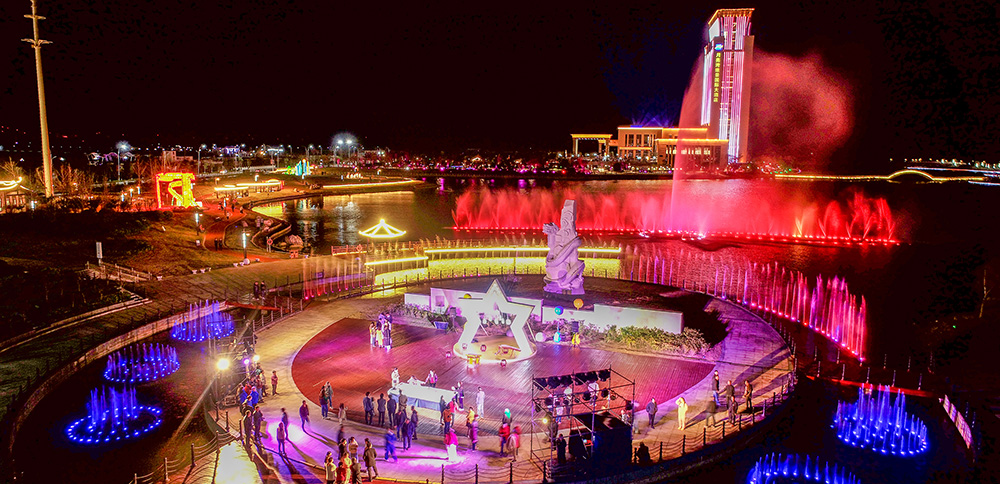 靈龍湖公園陸域面積330畝、水域面積370畝,是一座承載古黃河文化、淮河文化元素的復合型濱湖生態(tài)公園,采用“一島、一環(huán)、四片區(qū)”的空間格局,以綠為韻、以水為脈,將自然與生態(tài)完美融合,延續(xù)著兩河及海洋文化記憶。特色景點包括:親子樂園、水幕映畫、音樂噴泉、舞龍廣場、生肖廣場、網(wǎng)紅打卡點主題雕塑等景點,打造生態(tài)自然的主客共享公共休閑空間。