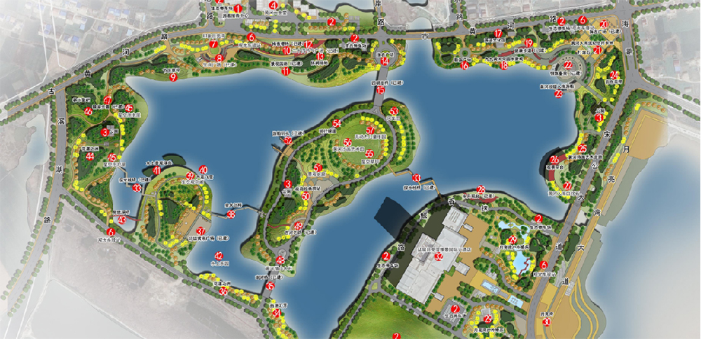 靈龍湖公園陸域面積330畝、水域面積370畝,是一座承載古黃河文化、淮河文化元素的復合型濱湖生態(tài)公園,采用“一島、一環(huán)、四片區(qū)”的空間格局,以綠為韻、以水為脈,將自然與生態(tài)完美融合,延續(xù)著兩河及海洋文化記憶。
